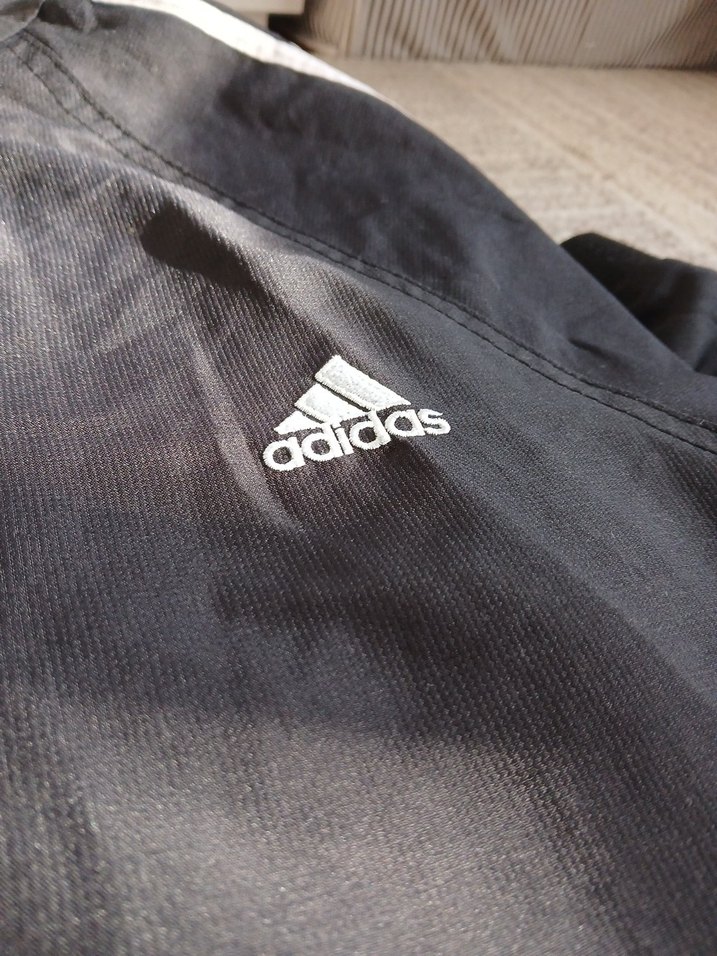 Siyah renkli, bol kesim, fermuarlı ceplere sahip. Adidas logosu işlenmiştir. Streetwear tarzında, sentetik kumaştan üretilmiştir. Pamukludur, teri tutmaz ve rüzgar geçirmez.