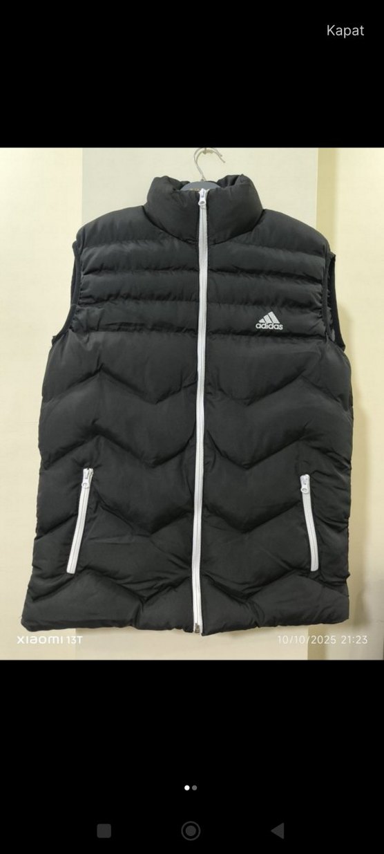 Fermuarlı önü ve yüksek yakasıyla Adidas siyah erkek yelek. Yumuşak ve sıcak kumaştan, şık ve rahat dış mekan kullanımı için uygun.