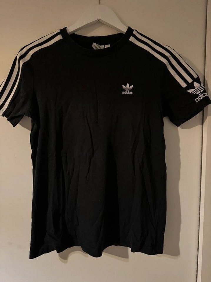 Pamuklu, siyah, kısa kollu kız çocuk tişörtü. Adidas logosu ve kol şeritleriyle modern sokak tarzı sunar.