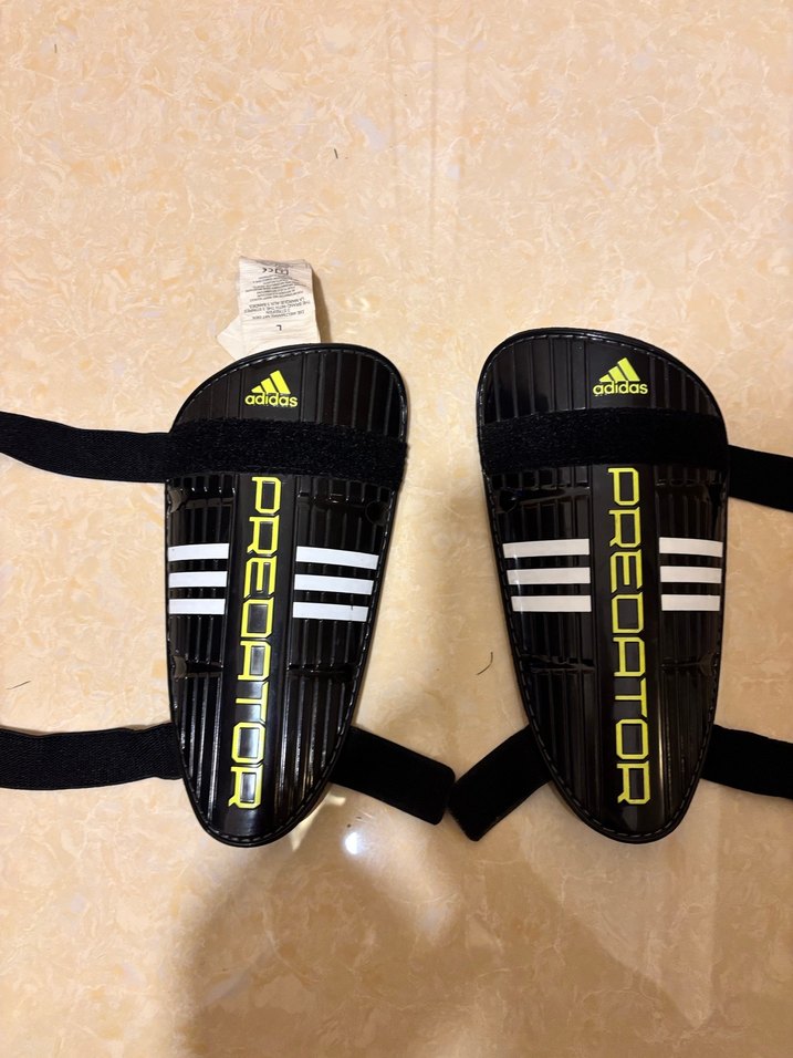 Siyah Adidas Predator futbol tekmelikleri cırt bantlıdır. Dayanıklı malzemeden üretilmiş, baskılı ve az kullanılmıştır. L beden