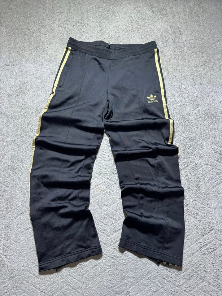 Sarı şeritli siyah Adidas salaş kadın eşofman altı, midi boy ve yumuşak kumaşla rahat sportif görünüm sunar. Zahmetsiz şıklık sağlar.