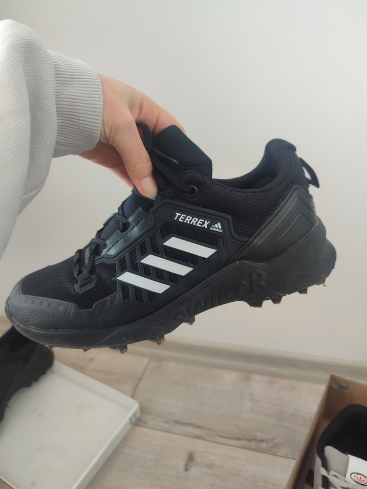 Siyah Terrex erkek outdoor spor ayakkabı, bağcıklı, kauçuk tabanlı ve baskılı sokak stili ile dikkat çekiyor. Spor ve günlük kullanım için uygun. ORJİNAL DEGİLDİR