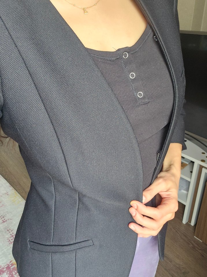Düğmesiz, siyah renkli,notched lapel yakalı, iş ortamına uygun, fitted kesim kadın blazer. adl marka