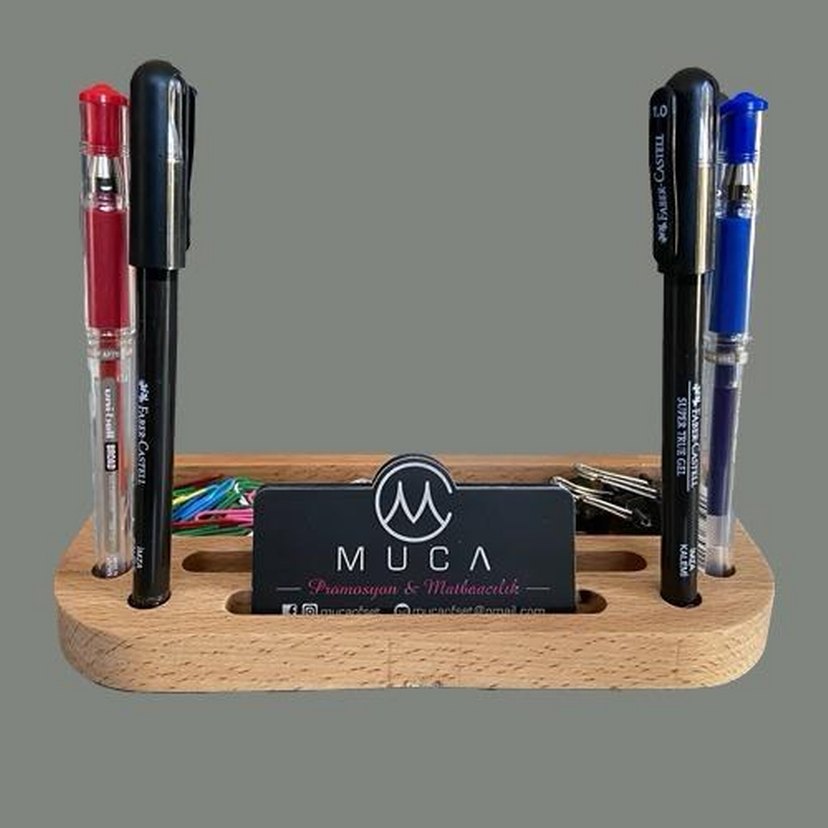 siyah ahşap makyaj organizeri, kalemler, ataçlar ve kartvizitler için çoklu yuvalar içerir, masanızı düzenli tutar. ️ Özel tasarım
