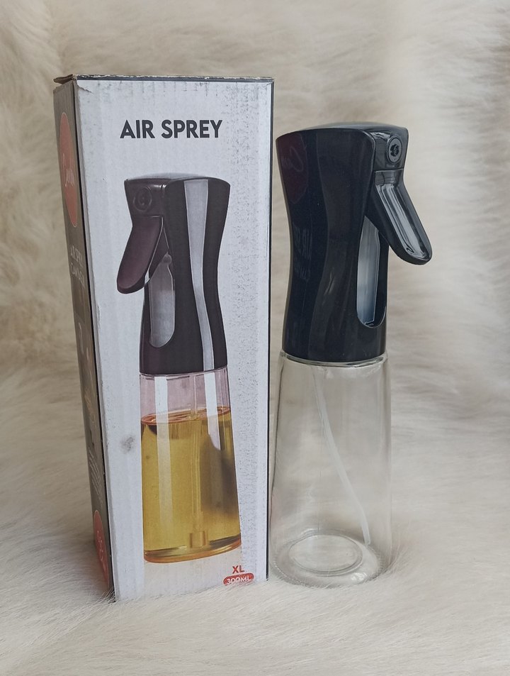 Mutfakta yağ uygulaması için tasarlanmış, şeffaf hazneli ve ergonomik tetik mekanizmalı siyah sprey şişe.