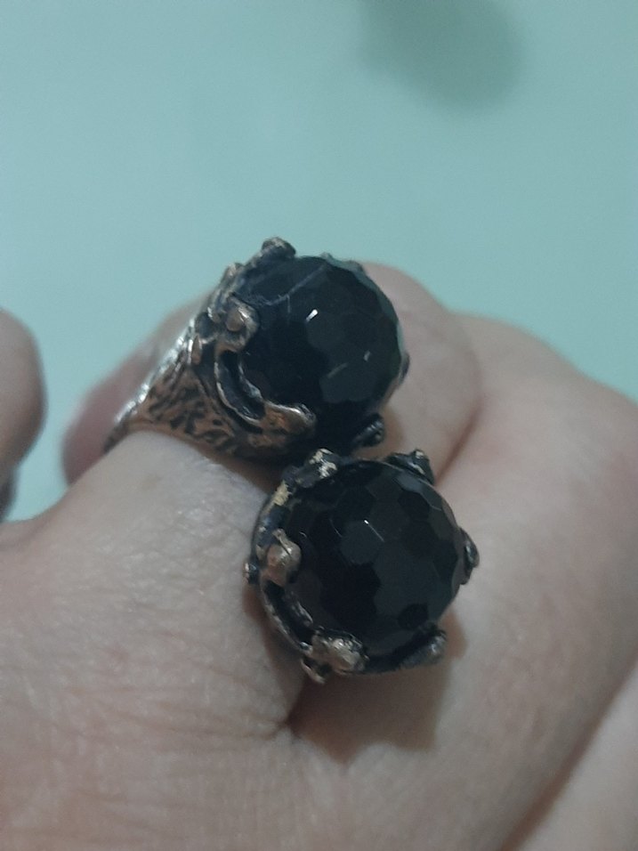 SIYAH AKIK BRONZ YUZUK VINTAGE