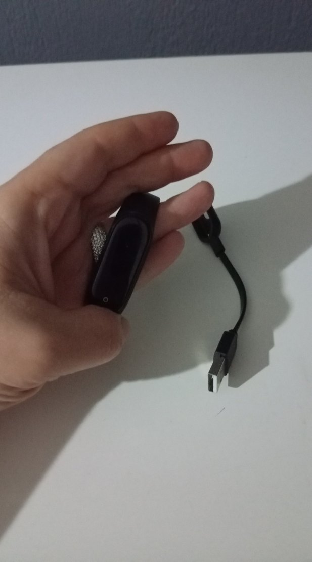 Kompakt ve hafif tasarıma sahip siyah akıllı bileklik, USB şarj kablosu ile birlikte gelir. ⌚