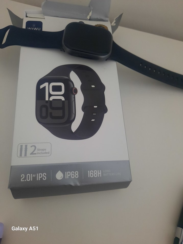 2.0 inç IPS ekranlı, IP68 su geçirmez özellikli siyah akıllı saat. 168 saate kadar pil ömrü ve iki kayış dahildir. ⌚