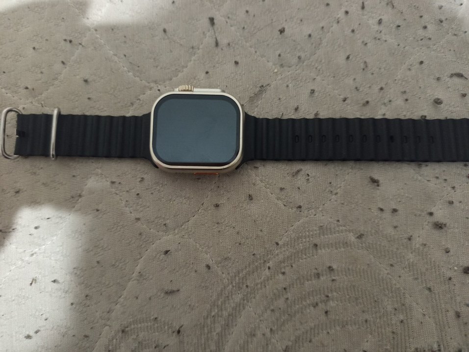 Dikdörtgen ekranlı, siyah silikon kayışa sahip, fonksiyonel ve şık tasarımlı siyah akıllı saat. sadece şarj aleti ve kutusu yok onun dışında sağlamdır kullanılmadı hiç