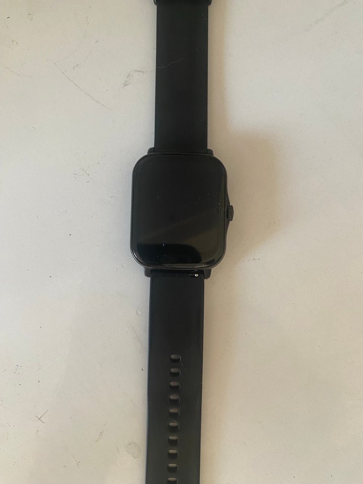 Siyah, ayarlanabilir kayışa sahip, karanlık ve şık tasarımlı akıllı saat. Dikdörtgen ekran ve yan düğme bulunur. Telefondan uygulamadan herşeyi ayarlayabilirsiniz telefondaki bildirimi aramayı gorebilir ve rahatça sesli konuşabilirsiniz Aynı zamanda saat stilini kendi resmini koymak uygulamanın içinde dahildir.