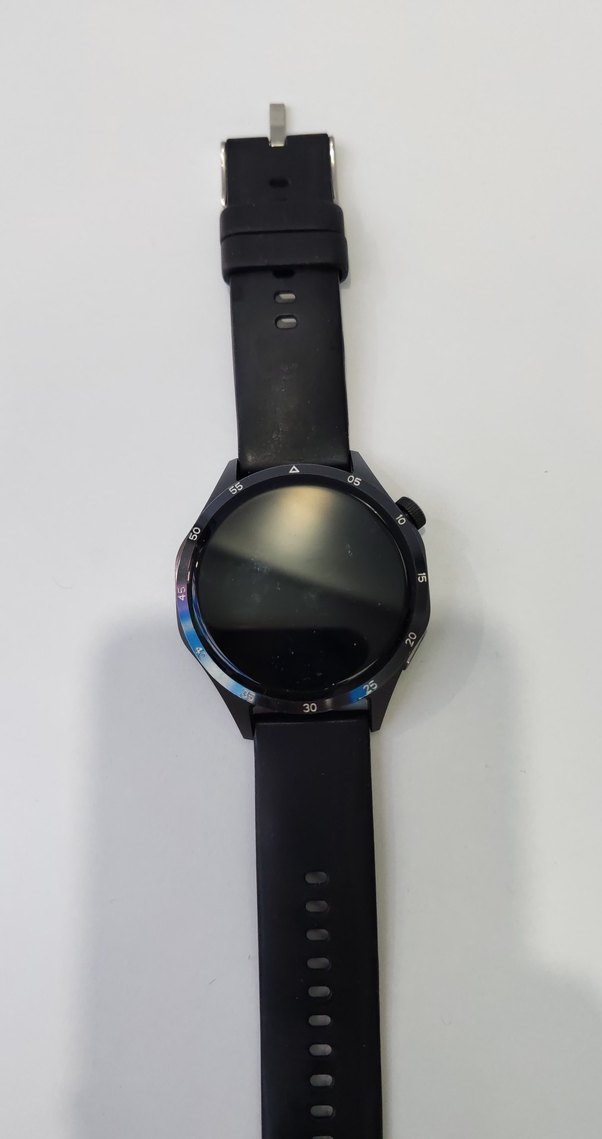 Ayarlanabilir kayışlı, yuvarlak ekranlı siyah akıllı saat, şık koyu tasarım. 1 defa kullanılmış olup temiz üründür ⌚