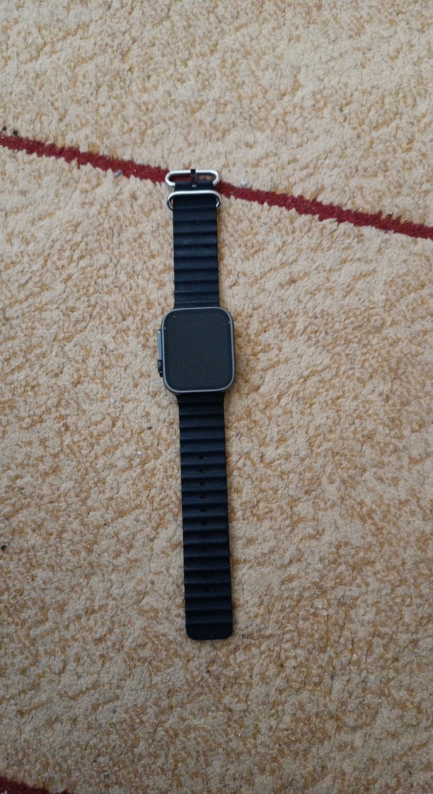 şarj aleti yok çalışıp çalışmadığını bilmiyorum alıcısı bunu bilerek alsın lütfen Gri kare ekran ve siyah dokulu kayışa sahip bu akıllı saat, modern tasarım ve konfor sunar. ⌚