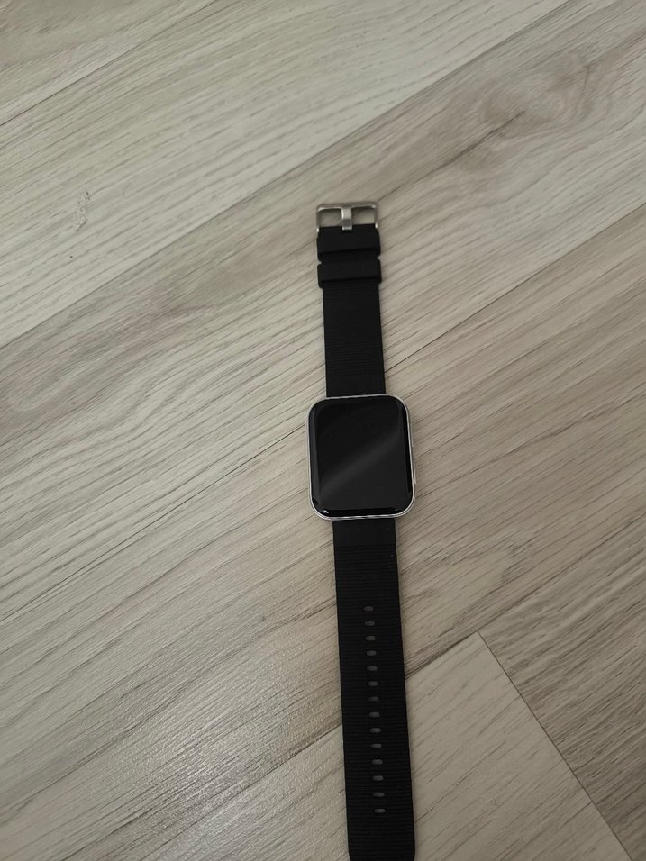 Gri kasalı ve siyah kayışlı bu akıllı saat, şık ve modern bir tasarıma sahiptir. ⌚