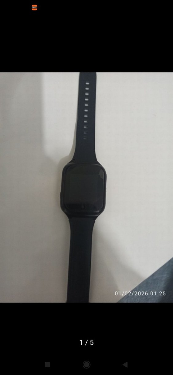 Siyah kayışlı, dikdörtgen ekranlı akıllı saat. Ekranda 01/02/2026 01:25 tarihi ve saati görünüyor. ⌚sorunsuz sim kartlı ekran korumalı sadece kemeri yoktur