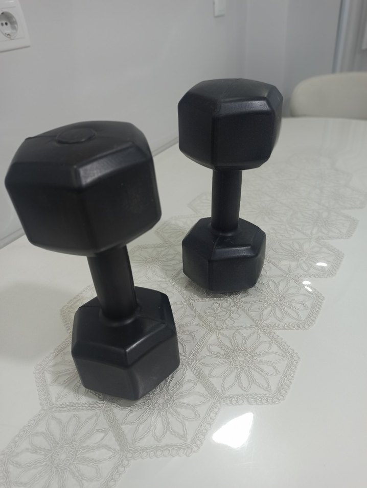Düz yüzeyli siyah altıgen dambıl çift seti, çeşitli egzersizler için uygundur. ️