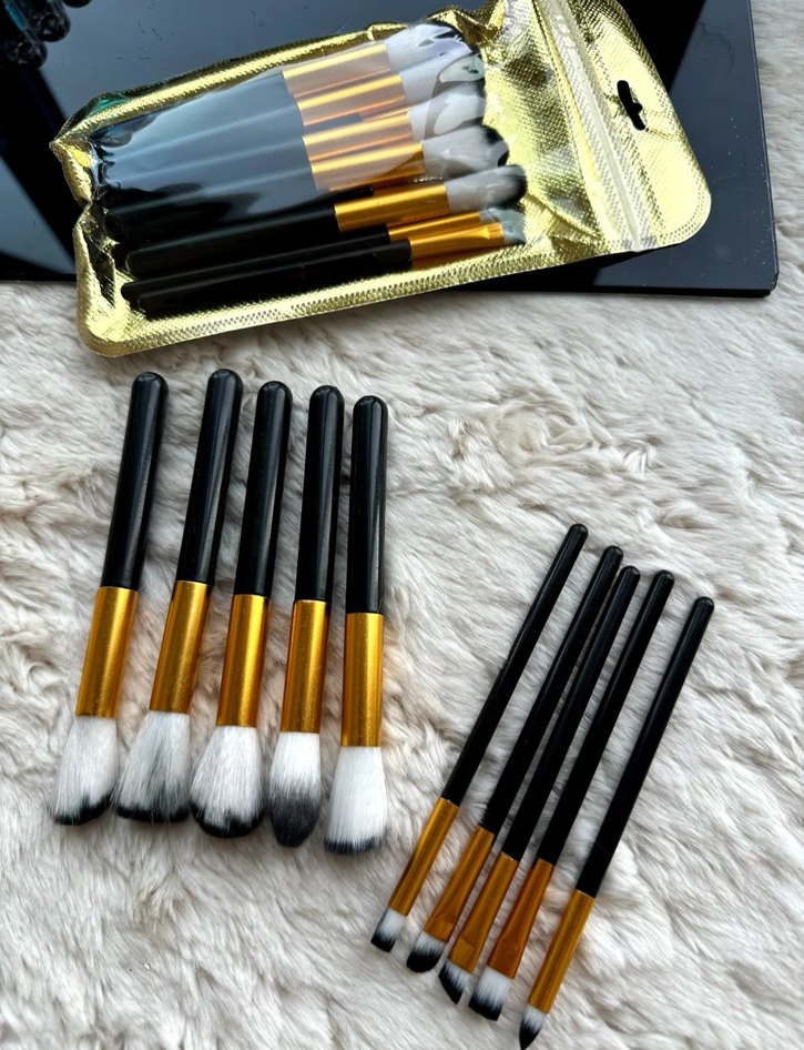 Siyah Altın RengiDetaylı Makyaj 10'lu Fırça Seti