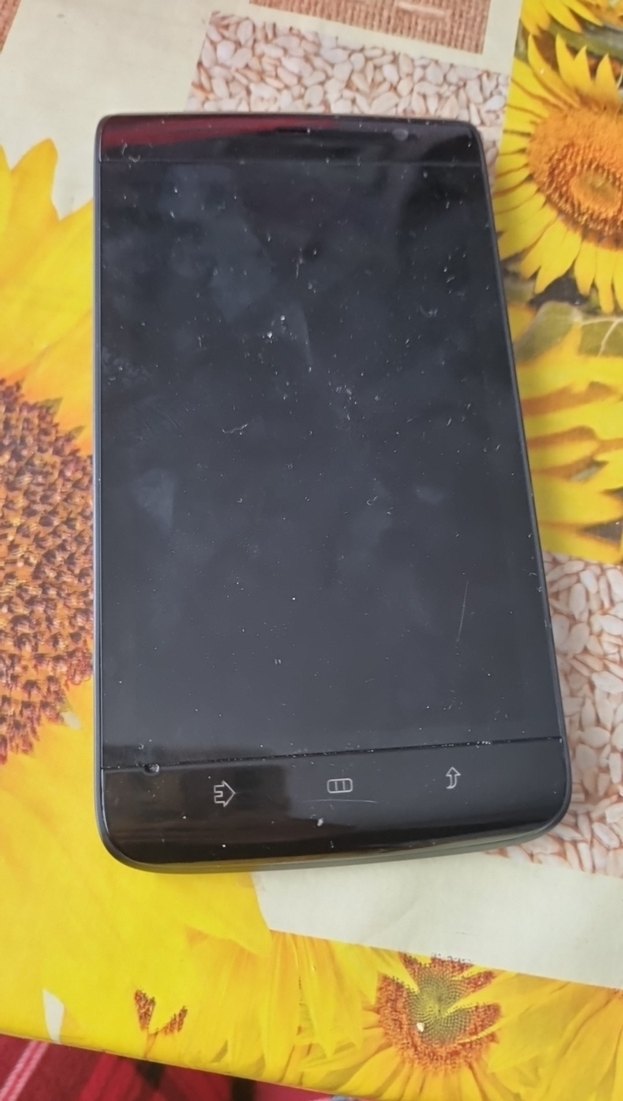 Ekranın altında dokunmatik navigasyon butonları bulunan siyah Android akıllı telefon. Kompakt tasarıma sahiptir. calisiyormu bilmiyorum parca icin satiyorum