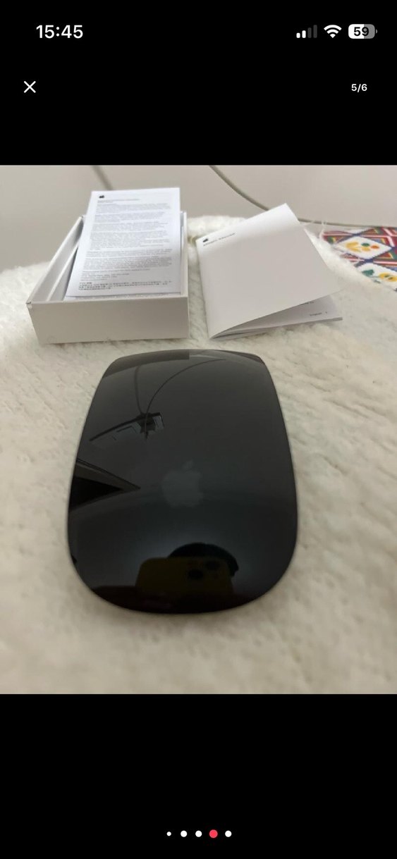 Siyah Apple Magic Mouse, pürüzsüz parlak yüzey ve kablosuz kullanım özelliklerine sahiptir. Orijinal kutu ve kullanım kılavuzları ile birlikte gelir. ️