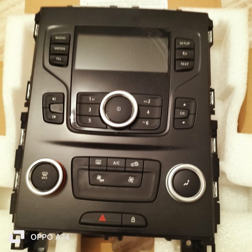 Radyo, medya ve klima kontrol düğmeleri ile siyah araç müzik sistemi kontrol paneli. Ortada düğme ve ekran bulunur. 2017 magane 4 orjinal 0 hiç kullanılmadı
