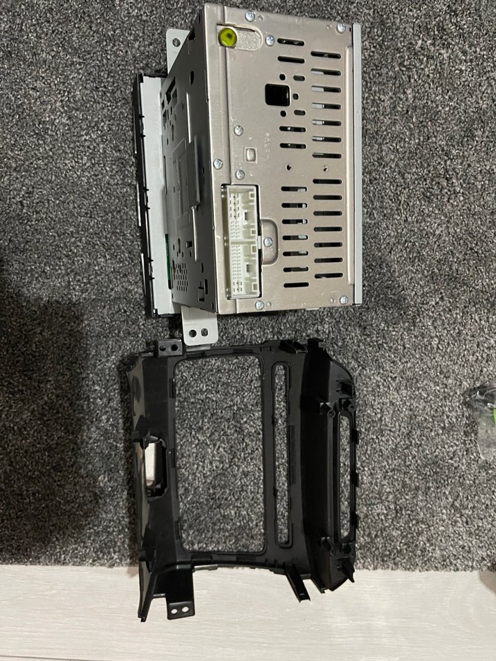 Metal kasalı ve ön panel çerçeveli siyah araç müzik sistemi ünitesi, gösterge paneline montaj için uygundur.