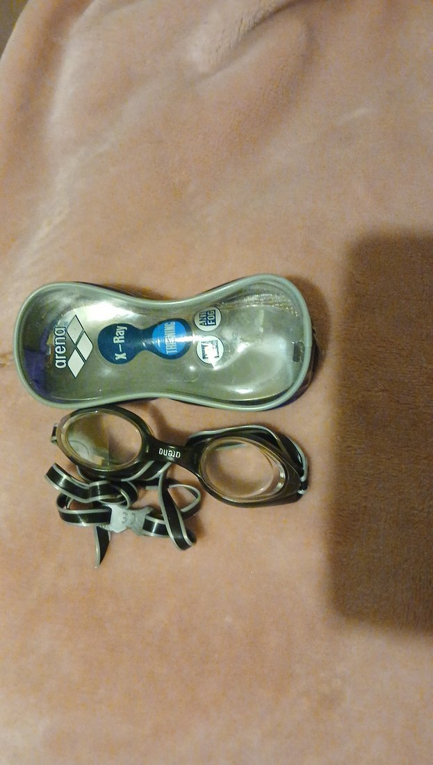 Siyah renkli Arena yüzücü gözlüğü, ayarlanabilir Velcro bantlı ve koruyucu sert kutulu, plaj kullanımı için uygun. ️