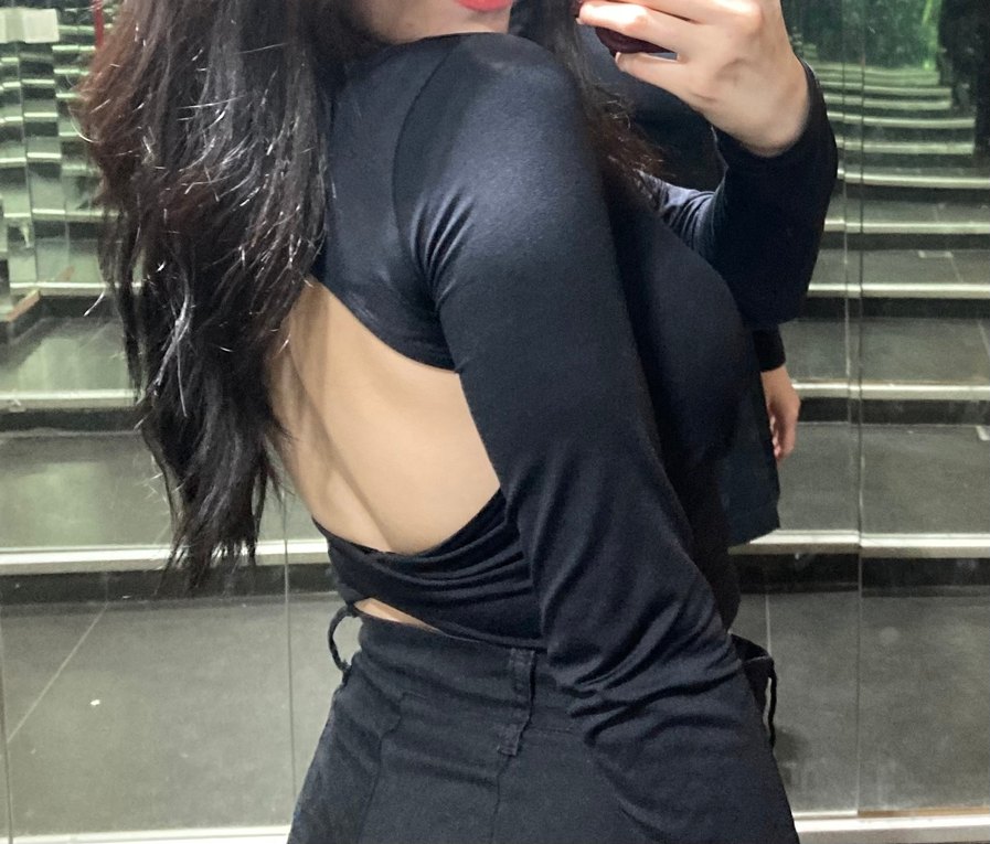 Siyah Arkası Dekolteli Uzun Kollu Kadın Bluz