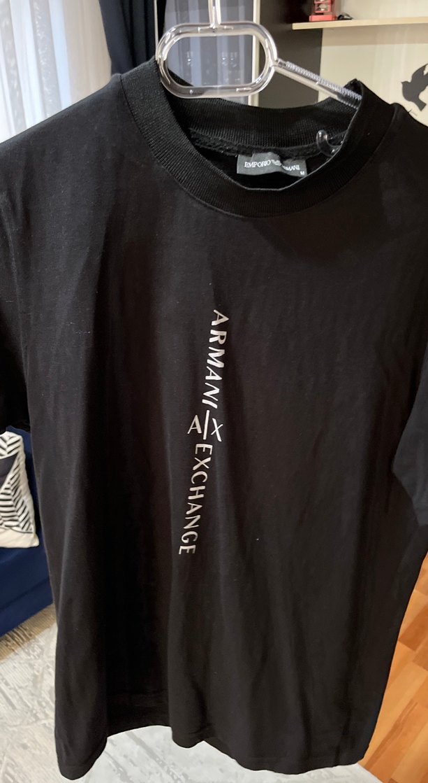Bu siyah Armani Exchange erkek tişörtü, dar kesim, bisiklet yaka ve kısa kolludur. Dikey baskılı logo ve ipeksi kumaşıyla günlük rahatlık sunar.