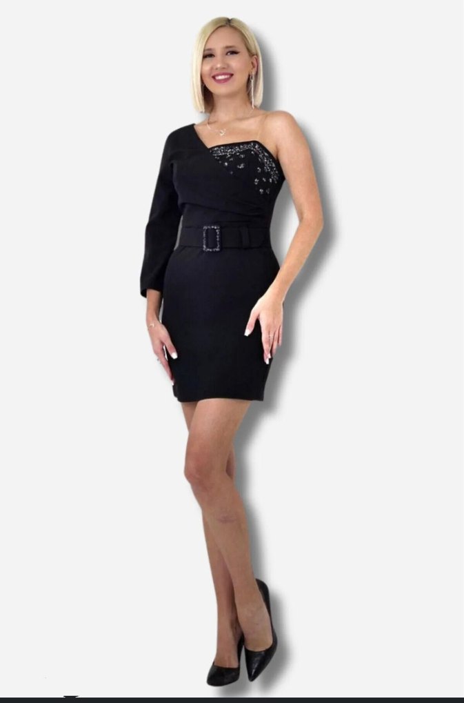 Siyah Asimetrik Tek Kollu Mini Elbise