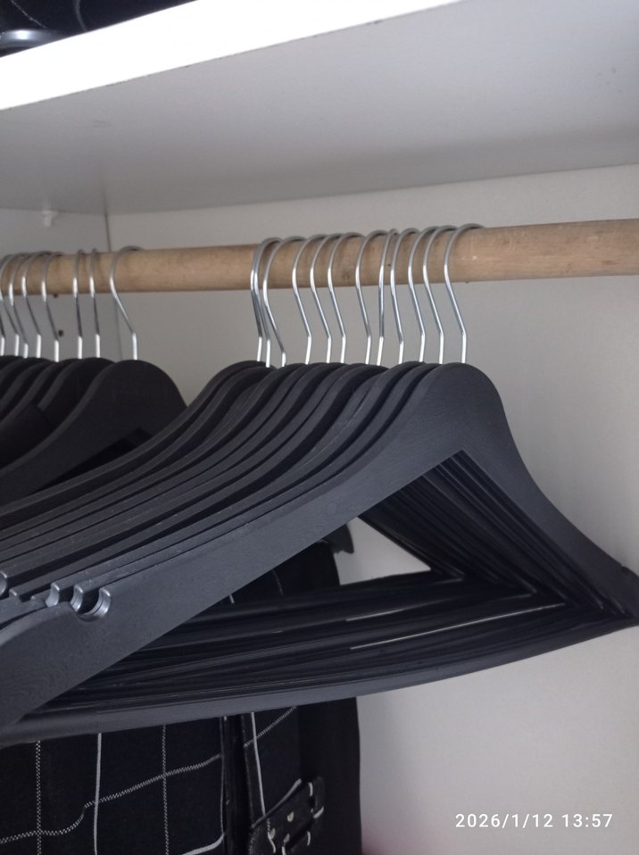 Metal kancalı siyah askılar, kıyafetler için sağlam destek sağlar. Şık tasarımıyla dolap düzenine yardımcı olur. dorcia home 24 adet yüksek kalite askılar fazlalıklar toplu gönderirim