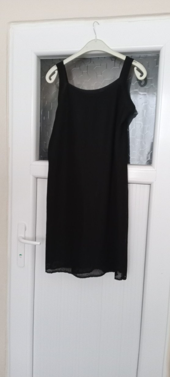 Örgülü desen,astarlı,askılı siyah abiye elbise.162 boyda diz hizasında duruyor.S-M uyumlu, çok şık.
