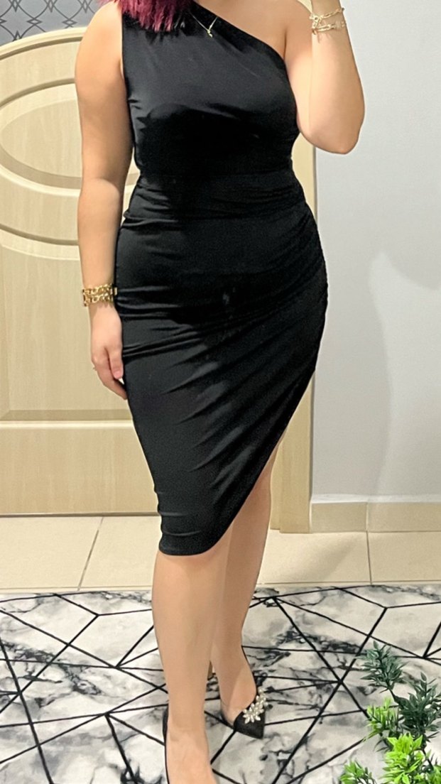 Siyah renkli, askısız yakalı ve drapeli detaylı, vücuda oturan midi kalem etek ve bluz takım bluzun altında taşlar var ben takım olarak giyiyorum . Romantik gece için şık ve iddialı bir tercih. Sorunsuz ayrı ayrı da satılabilir