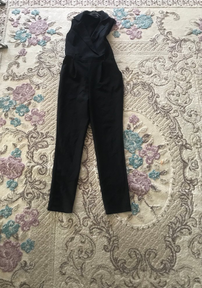 Siyah, Askılı, Kemerli Midi Tulum