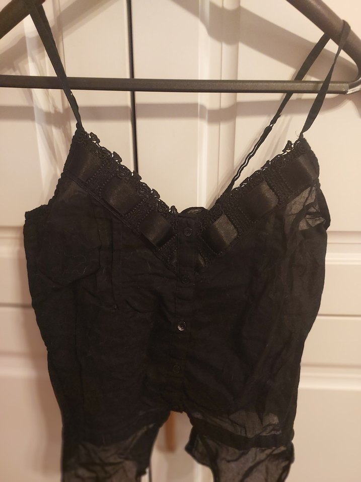 Bu siyah askılı keten gömlek midi boyda, desensiz tasarımıyla şık ve destekleyici bir uyum sunar. Ayarlanabilir askılar ve dantel detaylar bulunur.