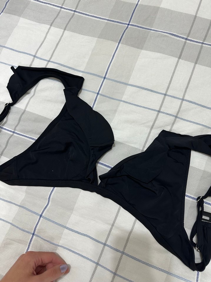 Siyah Askılı Midi Bikini Üstü