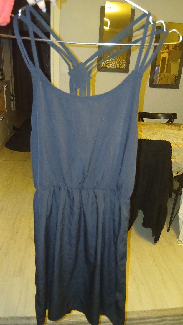 askılı midi elbise, straplez yaka ve bol kesimle drapeli tasarıma sahiptir. Yumuşak sentetik kumaştan üretilmiş, günlük kullanıma uygun minimalist, bohem stil sunar.