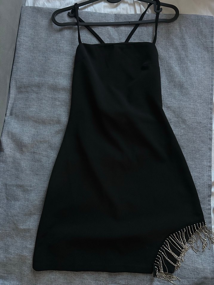 Bu siyah askılı midi elbise, straplez ve ince askılı detaylara sahip, drapeli tasarımıyla dikkat çekiyor. Gotik tarzda, avant-garde ve parti için uygun. ✨