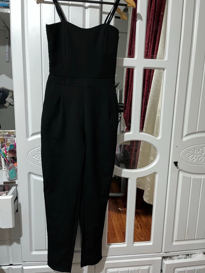 Siyah Askılı Midi Kadın Tulum