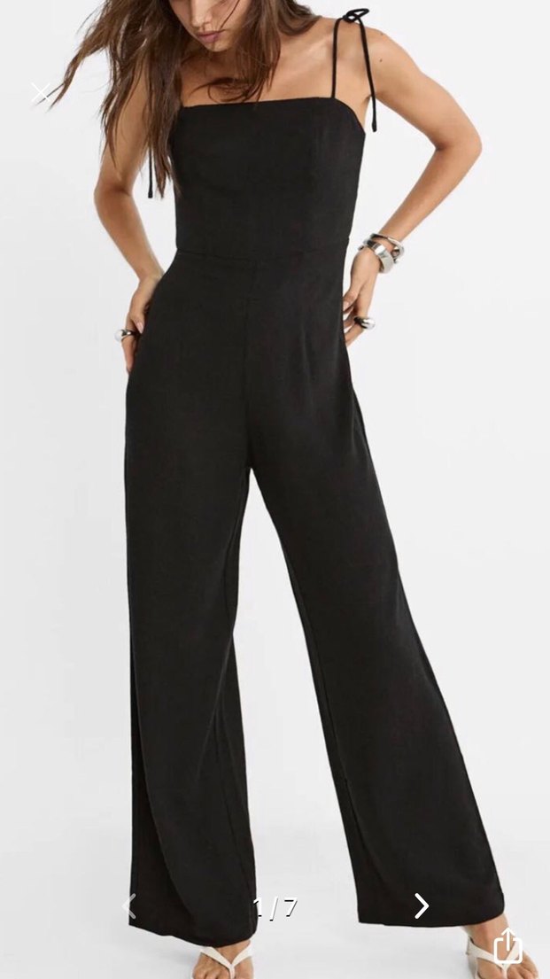 Siyah, askılı kolları ve straplez yakası olan, vücuda oturan midi uzunlukta, ipeksi dokulu kadın tulumu. Minimalist ve şık, romantik akşamlar için ideal. ✨