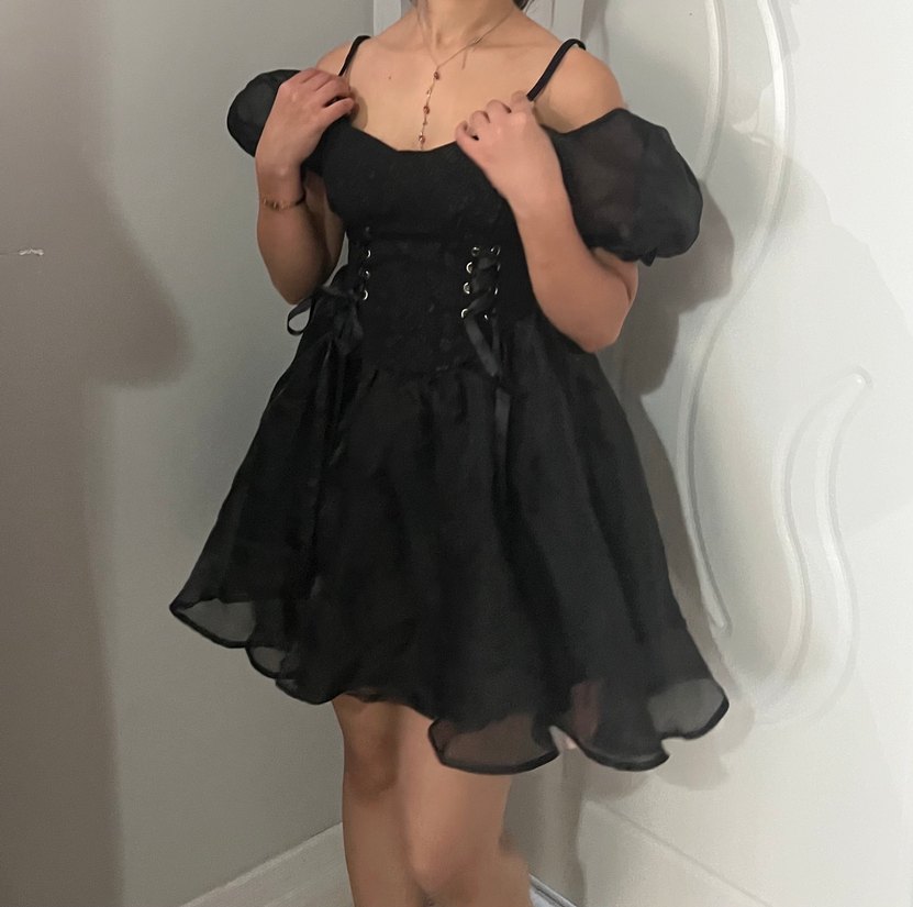 Siyah gotik mini elbise fırfır detaylarıyla hem özel güne hem de günlük yaşama uygundur hiç giyilmedi etiketi de mevcuttur