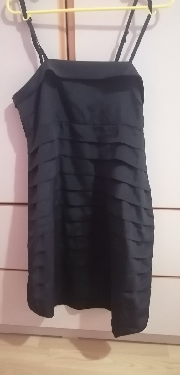 Siyah askılı, straplez yaka ve pilili, günlük ve gece kıyafeti olarak kullanılabilir, hiç giyilmedi, sıfır