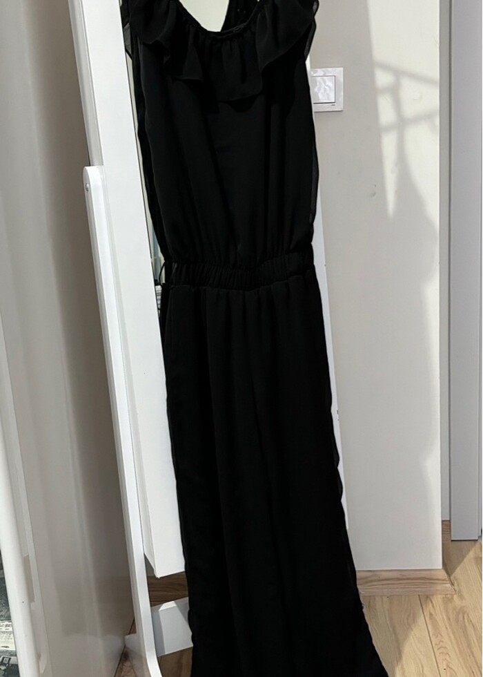 Siyah şifon askılı tulum 36 beden