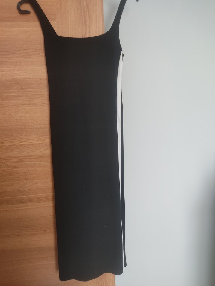 Siyah Askılı elbise, düz yaka ve Pürüzsüz sentetik kumaştan, sportif ve minimalist tarz için uygun.