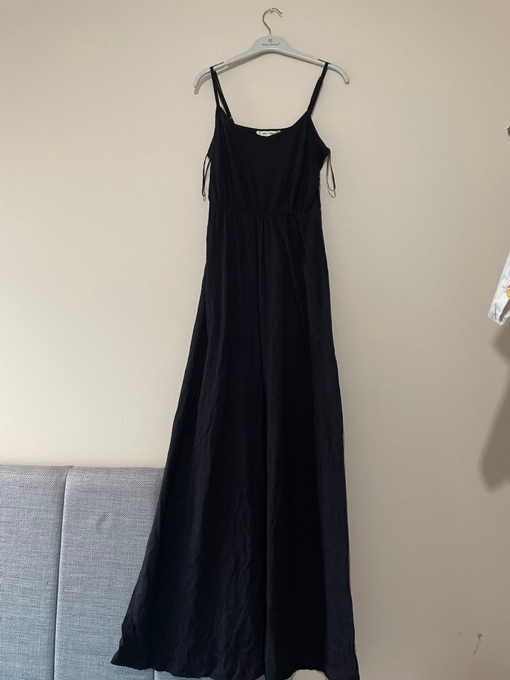 Siyah askılı uzun elbise. Trendy ve rahat bir görünüm sunar. Ürün temiz ve sorunsuzdur. Herhangi bir leke, yırtık veya deformasyon yoktur. Kullanım durumu: 1–2 kez giyildi Dolabımda kullanılmadığı için satıyorum. İlgilenenler gönül rahatlığıyla alabilir