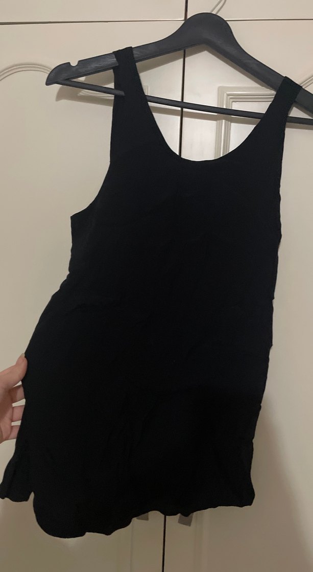 Siyah renkte, askısız yakaya sahip, ince ve kolsuz hemşirelik body. Rahat kullanım için sade tasarımlı.