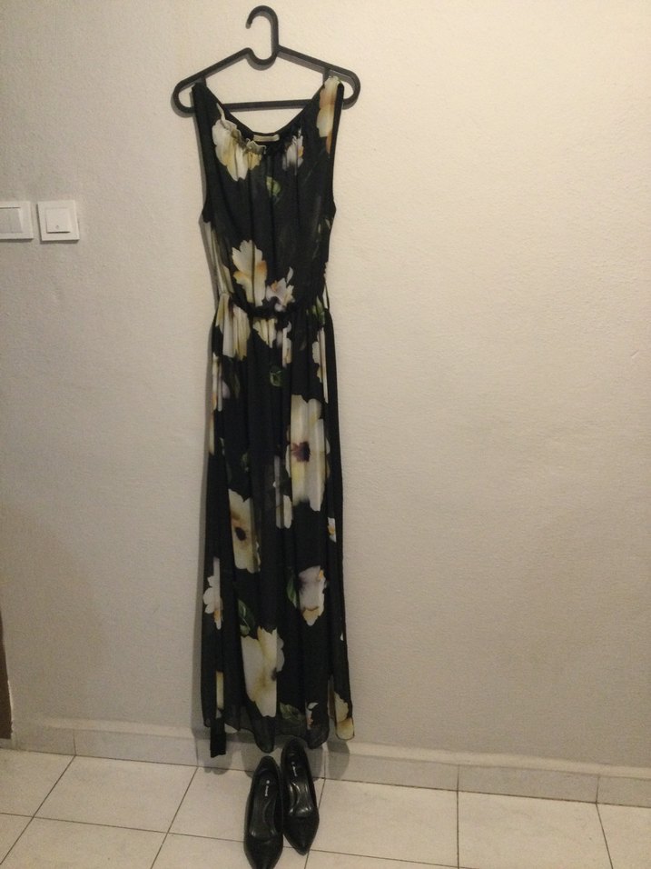 Siyah Askısız Uzun Bohem Elbise