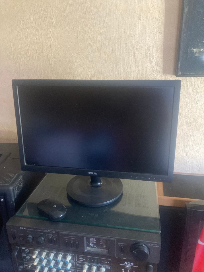 Bu siyah Asus monitör, net ekran ve dengeli yuvarlak taban sunar. Kablolu mouse ile birlikte gelir. ️