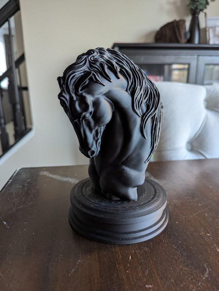 20 Cm Kişiselleştirebilir İstenilen Renkte Sipariş Verebilirsiniz Siyah Gümüş Bronz Beyaz Kırık Beyaz vb 3d Printer ile Yapılmıştır Plastiktir Ağır Toktur Detaylı yele ve kas yapısına sahip siyah at figürü, yuvarlak bir taban üzerinde duruyor.