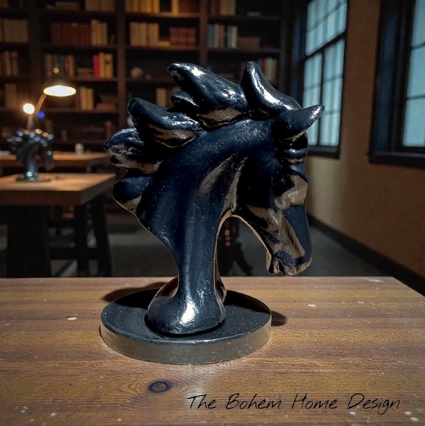 Siyah renkte, stilize yelesiyle dikkat çeken at figürü. Her ortama özgün bir hava katar. 14x10cm 1.sınıf taş tozundan hazırlanmaktadır 3kat boya 2kat vernik uygulanır.