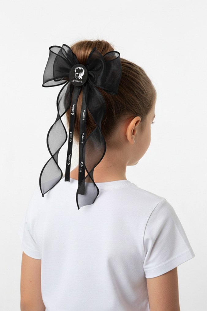 Siyah Atatürk baskılı Fiyonk Saç Aksesuarı