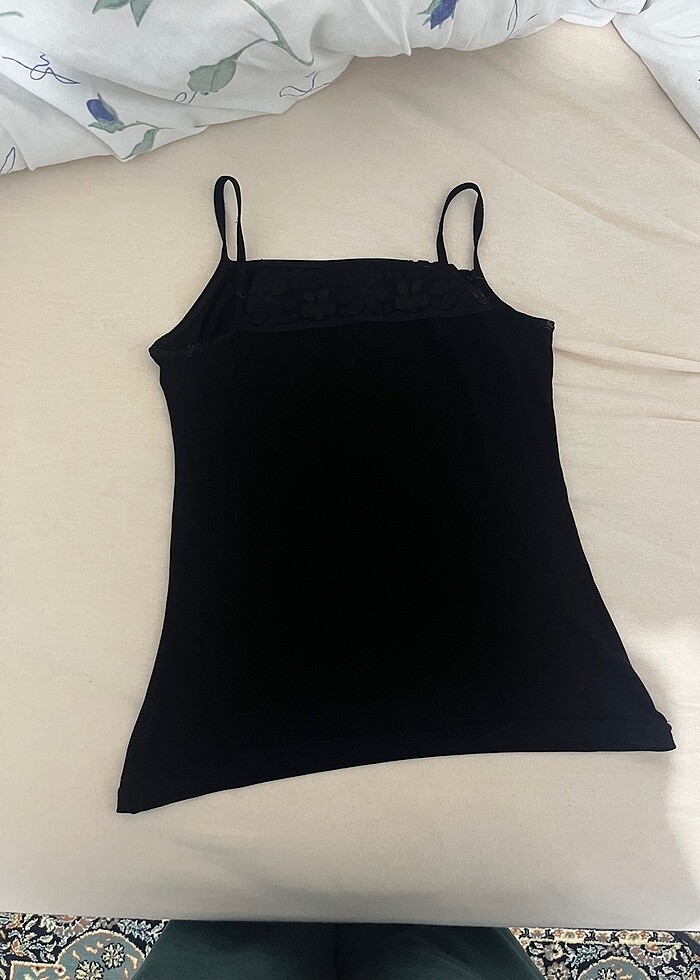 Siyah renk kalın dantelli atlet